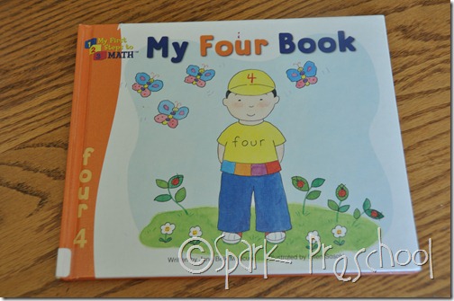 Our Introduction to the number 4 was this great book… (I know I said it last time, but I really like this series of books. So educational, but very interactive with the kids!).